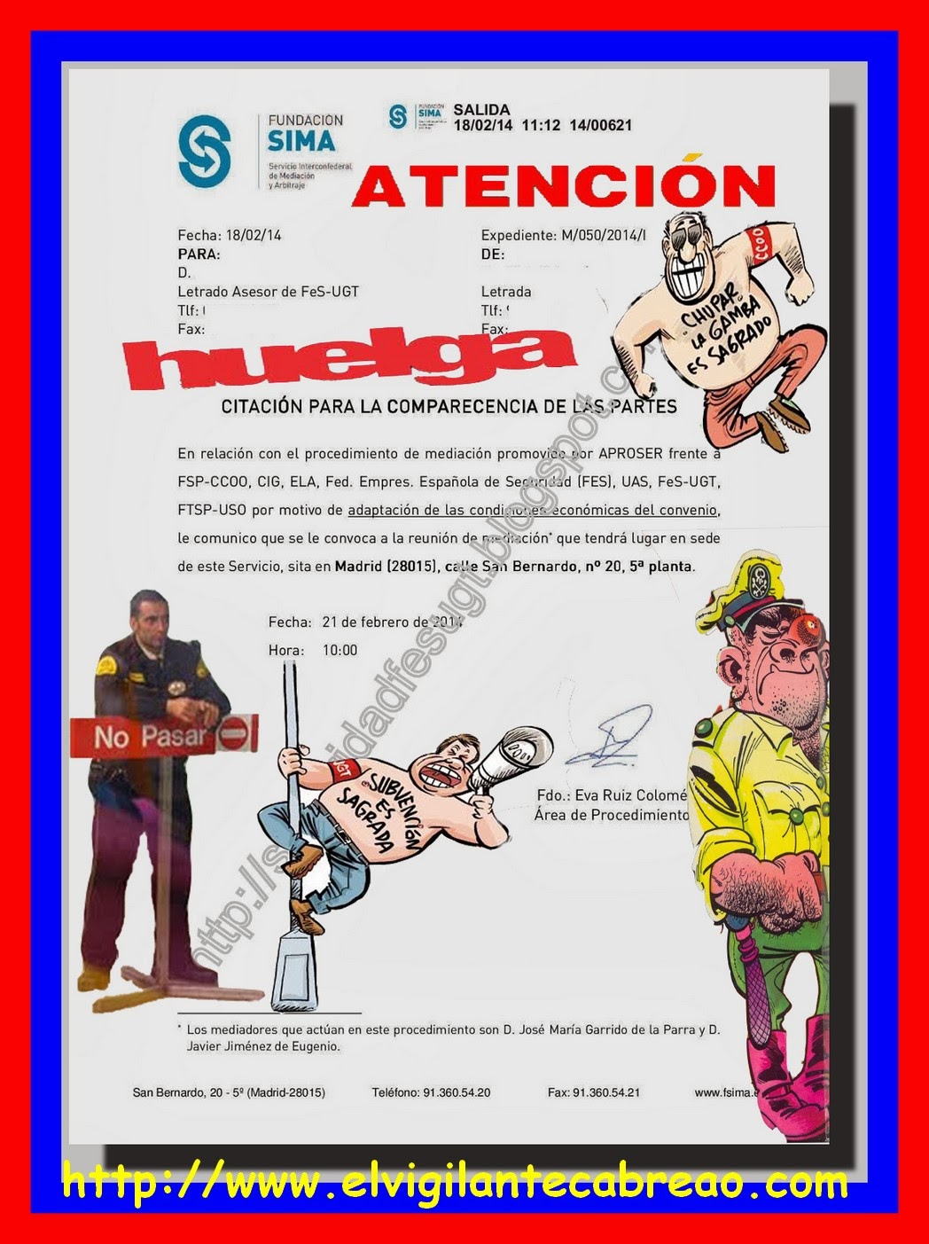 partes patronal y sindicatos el día 21 de febrero de 2014, a las 10.00 horas. Lugar